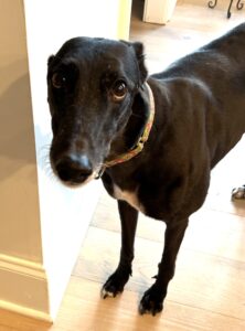 When he arrive he realized quickly that he would have to share his house with 2 Greyhounds, Birdie and Auddie. Both Birdie and Auddie came to us from Ireland through Second Chance Greyhounds and Southeastern Greyhound Rescue.